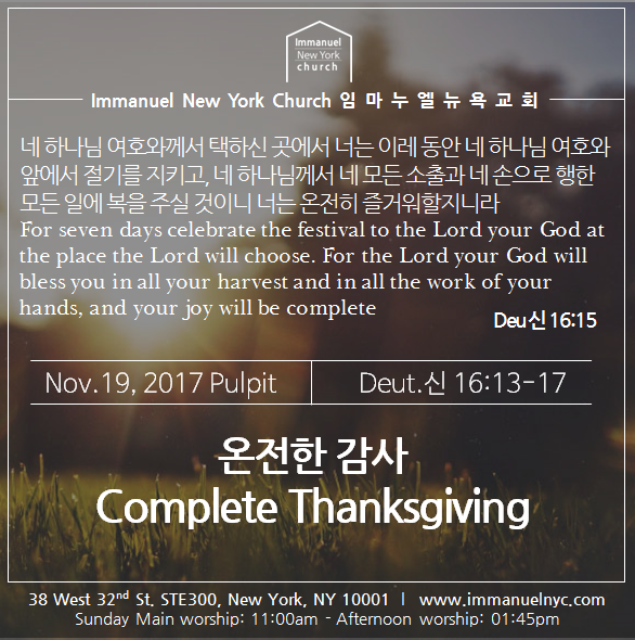 2017-11-19 온전한 감사 Complete Thanksgiving by Immanuel New York Church on Scribd