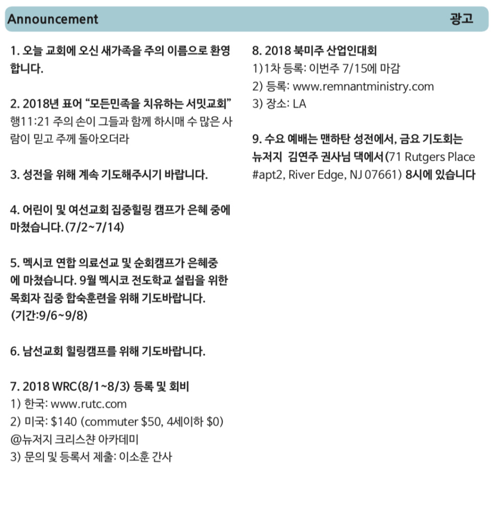 12. Offering prayer & benediction [/tab][tab title=”한글”] 1. 묵도