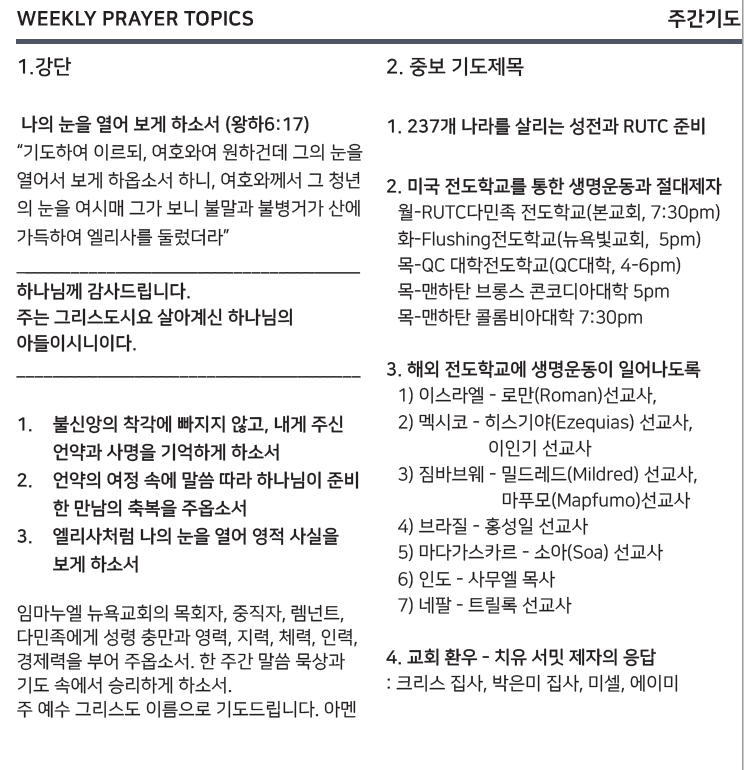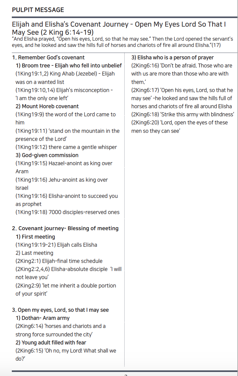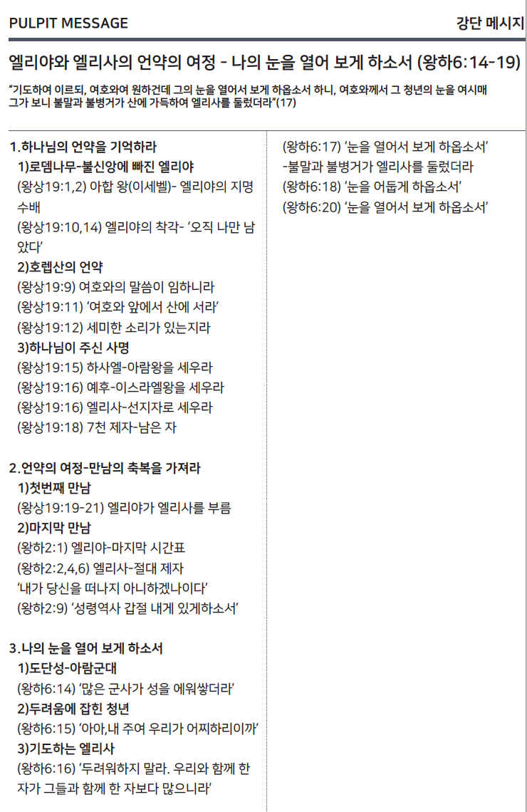 17 기도하여 이르되 여호와여 원하건대 그의 눈을 열어서 보게 하옵소서 하니 여호와께서 그 청년의 눈을 여시매 그가 보니 불말과 불병거가 산에 가득하여 엘리사를 둘렀더라