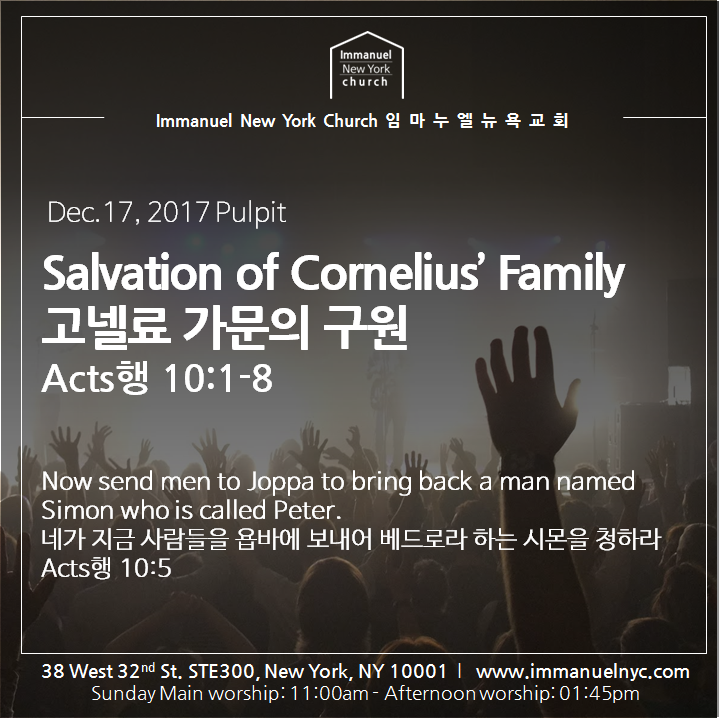 [Acts 행 10:1-8]고넬료 가문의 구원 Salvation of the Cornelius Family