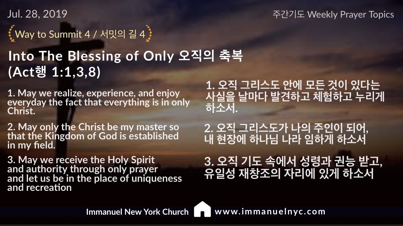 [Act 행1:1,3,8] Into the Blessing of Only 오직의 축복 속으로