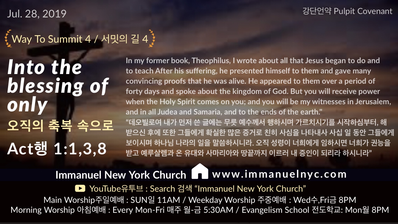 [Act 행1:1,3,8] Into the Blessing of Only 오직의 축복 속으로