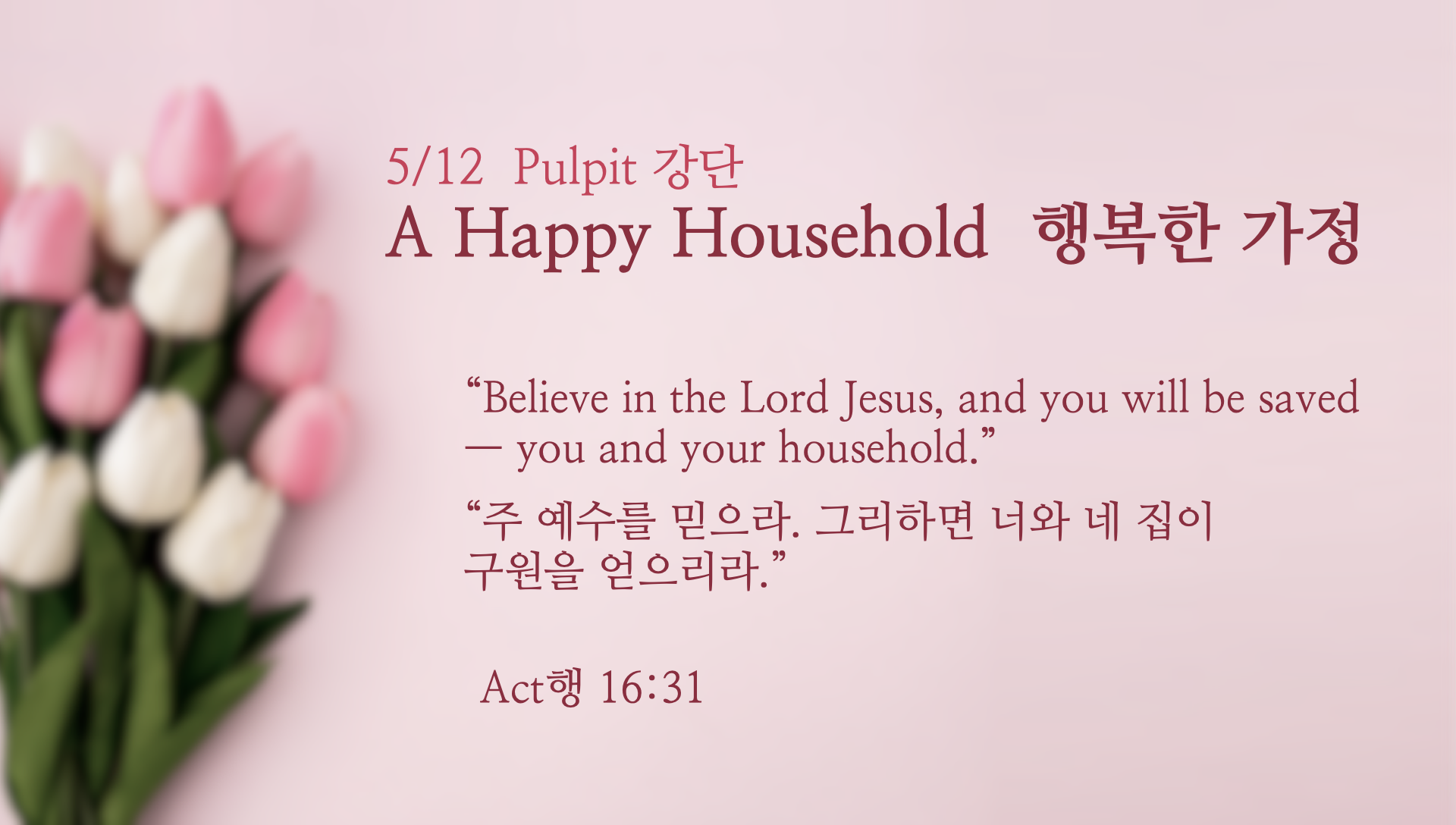 (행16:34) 온 집안이 하나님을 믿으므로 크게 기뻐하니라
