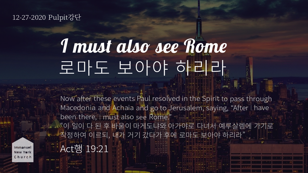 8. 설교- 로마도 보아야 하리라 (행19:21)