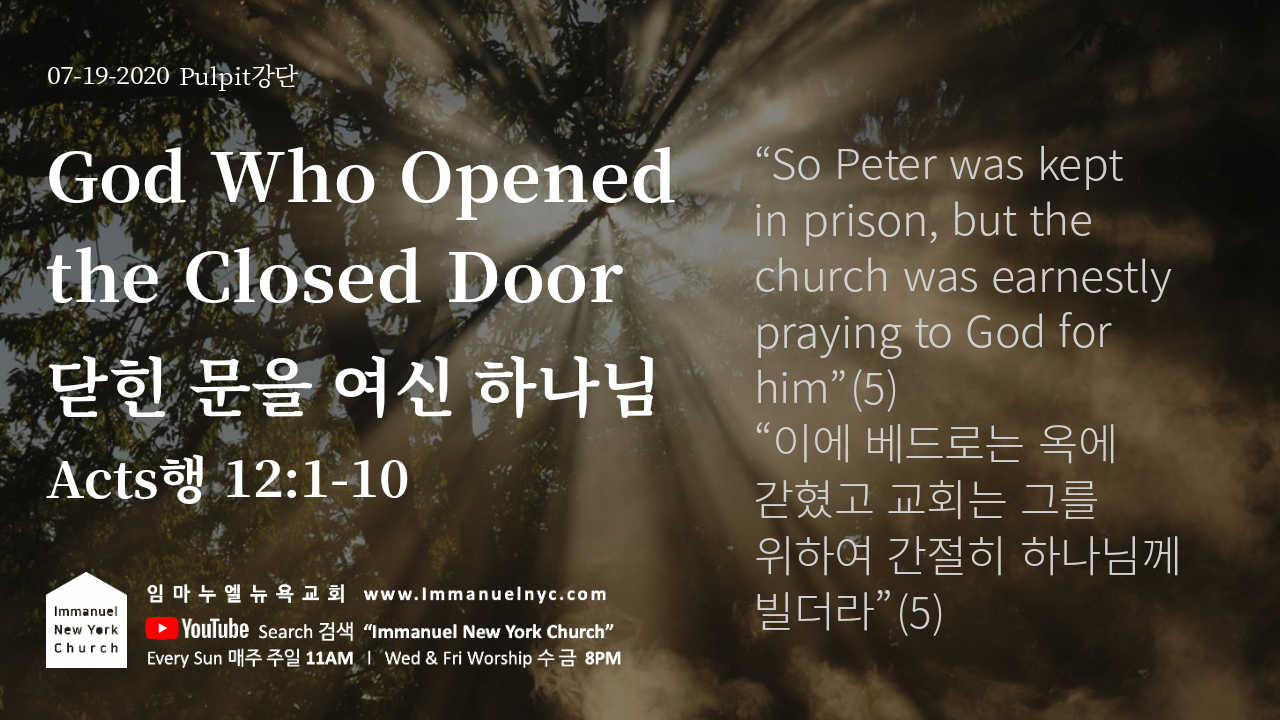 8. 설교 – 닫힌 문을 여신 하나님 (행12:1-10)