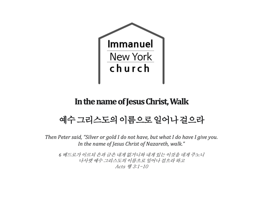 [Acts 행3:1-10] 예수 그리스도의 이름으로 일어나 걸으라 In the name of Jesus Christ of Nazareth, walk