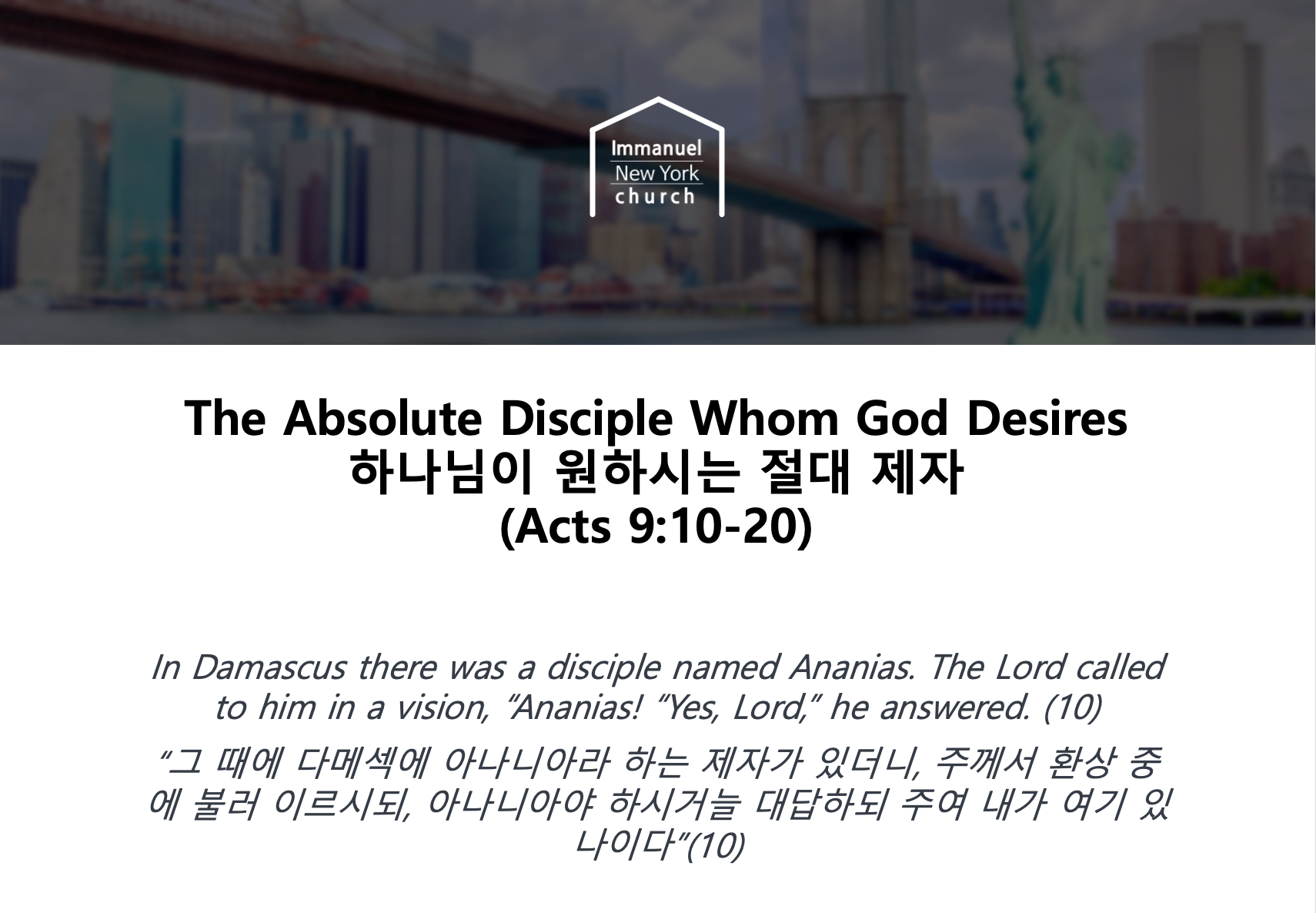 8. 설교 – 하나님이 원하시는 절대제자 (행9:10-20)