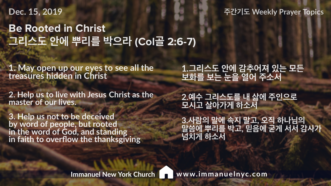 (골2:7) “그 안에 뿌리를 박으며 세움을 입어 교훈을 받은대로 믿음에 굳게 서서 감사함을 넘치게 하라”