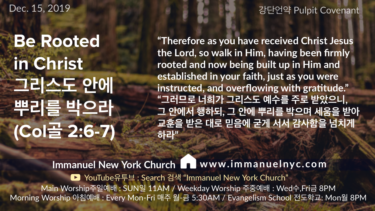 (골2:7) “그 안에 뿌리를 박으며 세움을 입어 교훈을 받은대로 믿음에 굳게 서서 감사함을 넘치게 하라”