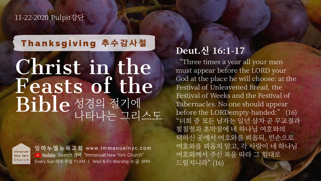 [Deut. 신 16:1-17]Christ in the Feasts of the Bible 성경의 절기에 나타나는 그리스도