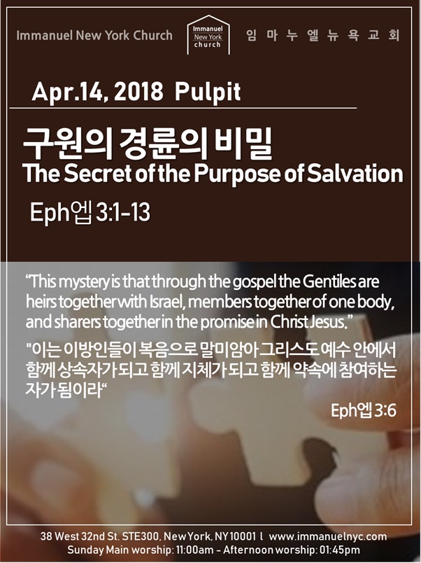 Pour out the filling of the Holy Spirit, spiritual power, physical power, manpower, economic power, and intellectual power to the Immanuel New York Church’s pastors, church officers, remnants, and people of all nations. May we have victory within the meditation of the Word and prayer. We pray this in Jesus Christ name. Amen.