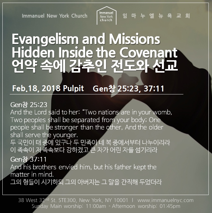 [Gen 창 25:23, 37:11] Evangelism and Missions Hidden Inside the Covenant 언약 속에 감추인 전도와 선교