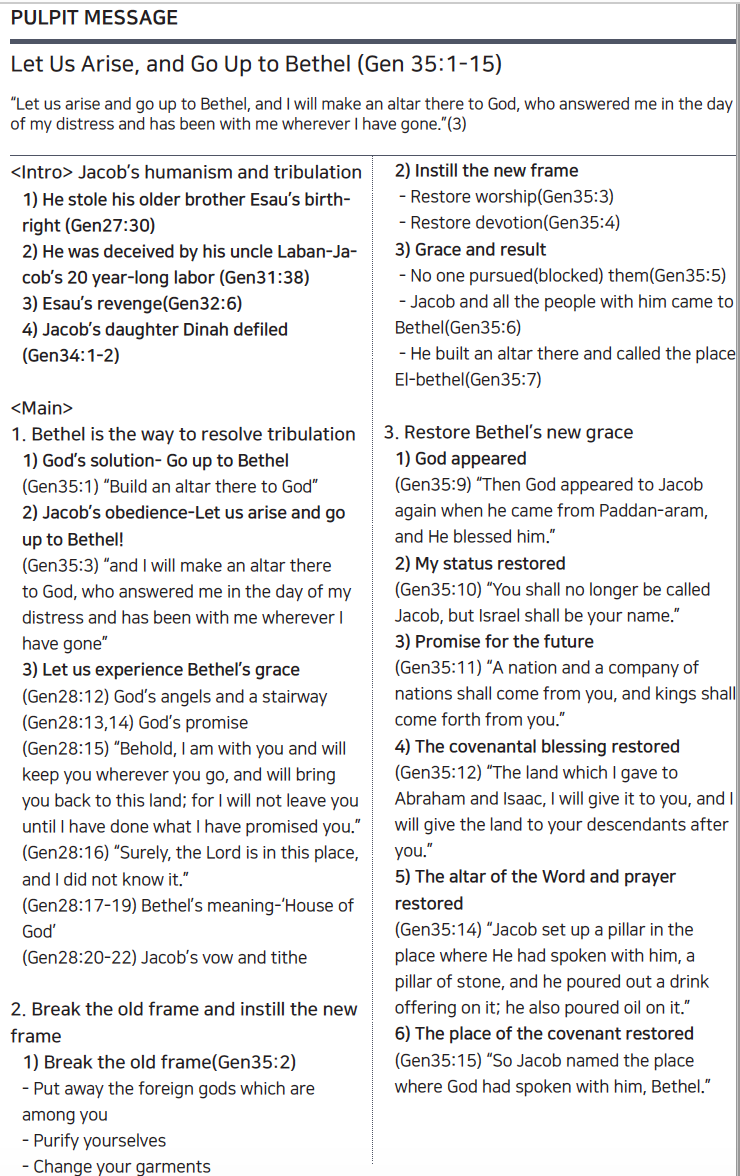 [Gen 창 35:1-15] Let Us Arise and Go Up to Bethel 벧엘로 올라가자-야곱의 언약의 여정
