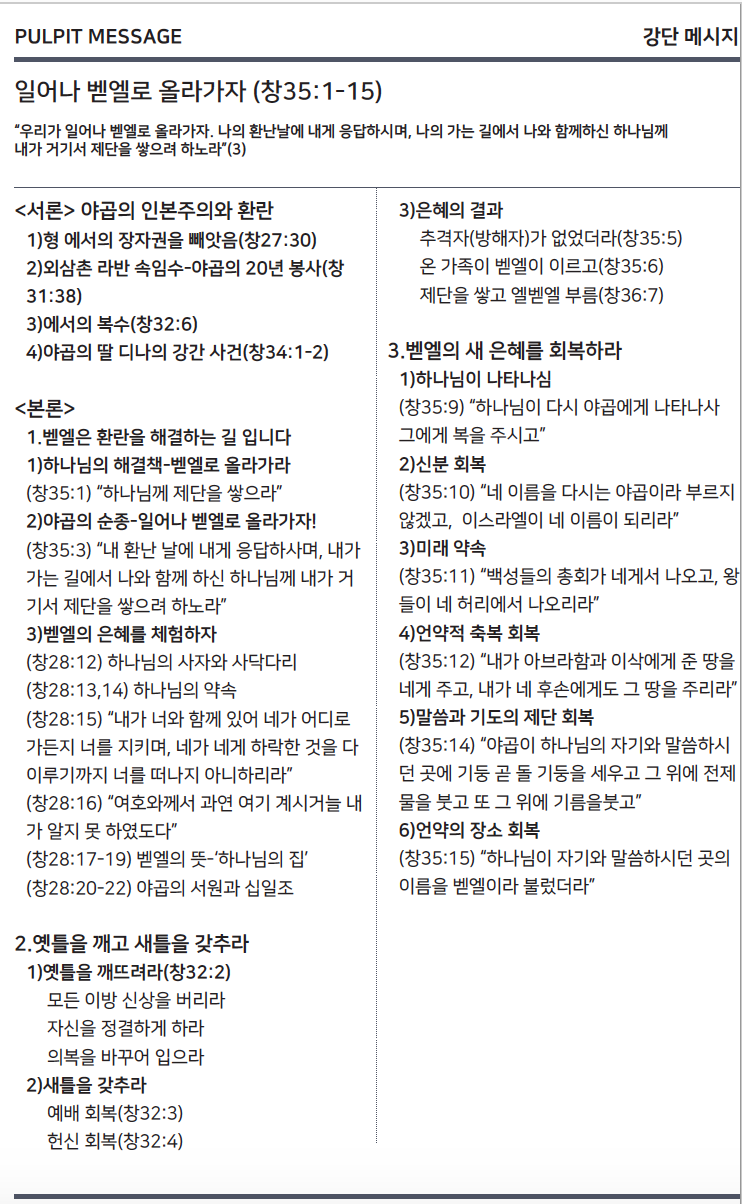 [Gen 창 35:1-15] Let Us Arise and Go Up to Bethel 벧엘로 올라가자-야곱의 언약의 여정