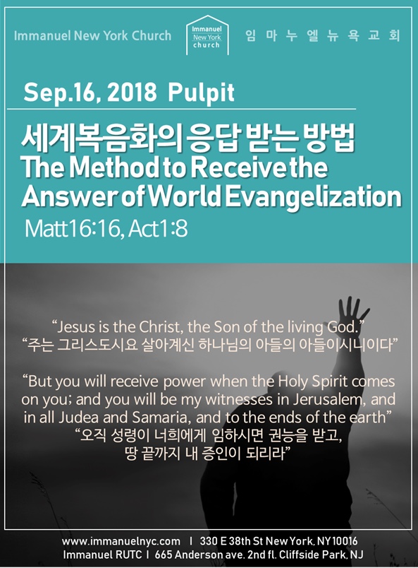 [Matt 마 16:16, Act 행 1:8]The Method to Receive the Answer of World Evangelization 세계복음화의 응답 받는 방법